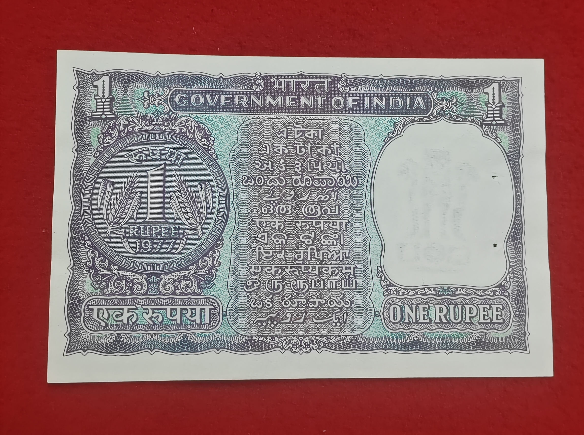 ONE RUPEE 1977 LOWER NUMBER NOTE 000083