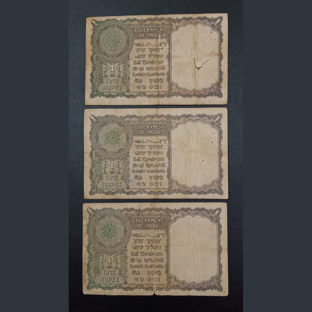 One Rupee A2 Issue FLORAL MOTIF Design K.G AMBEGAONKAR Lot 3 Notes **VERY RARE** Collectable Grades.