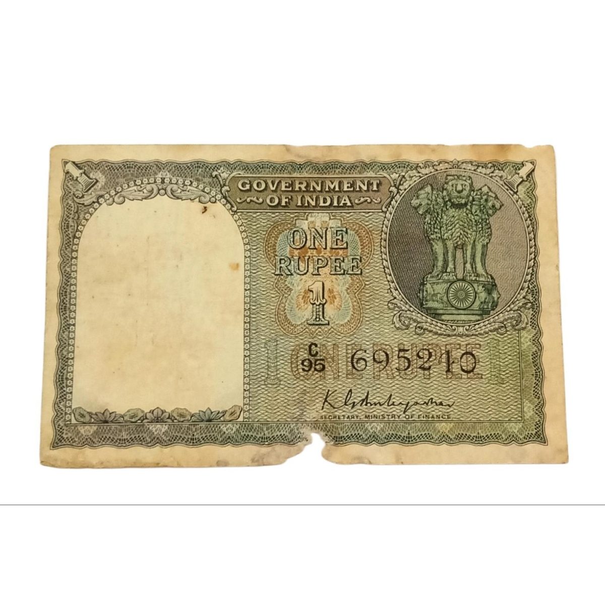 One Rupee A2 SECOND Issue FLORAL MOTIF Design K.G AMBEGAONKAR Year Missing **V. RARE** Used Grade.