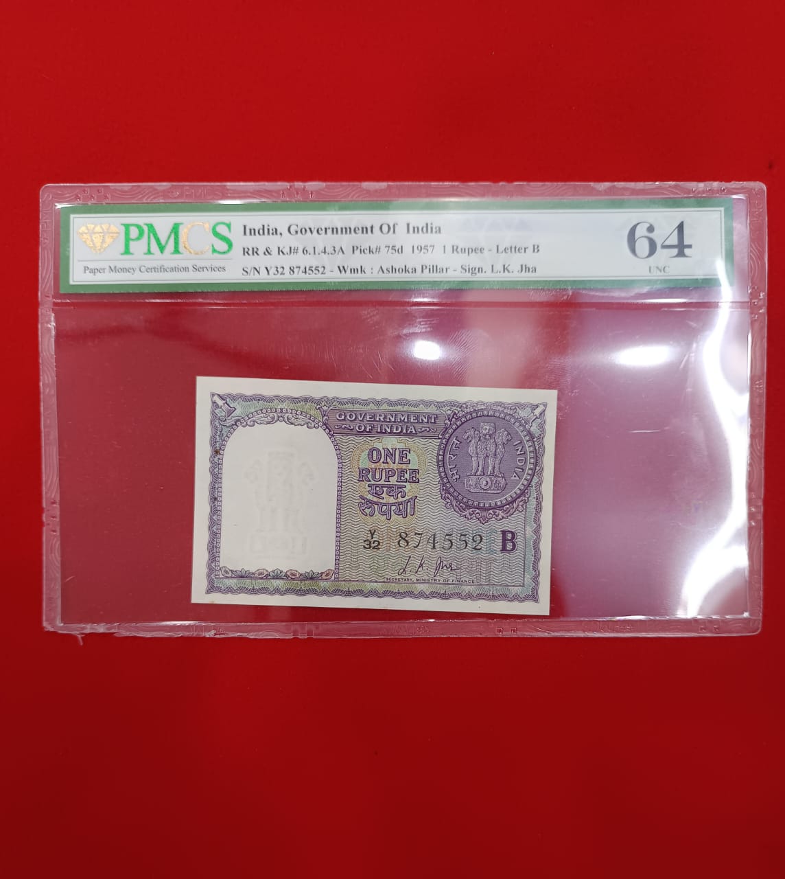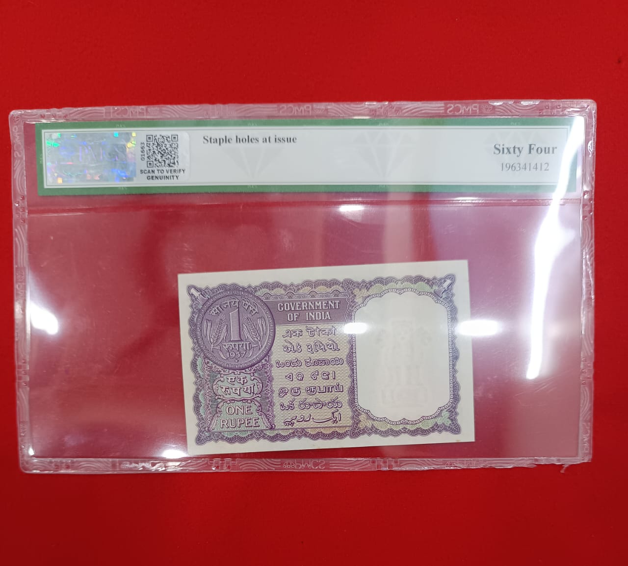 Immerse yourself in the rich history of India with this fascinating collectible – a 10 Rupee Note graded in UNC condition with a grade of 64. Issued with the serial number 874552, this rare piece is a true gem for any currency enthusiast. The note, denominated at 1 Rupee, showcases the intricate design and craftsmanship of the issuing authority, making it a valuable addition to any collection.