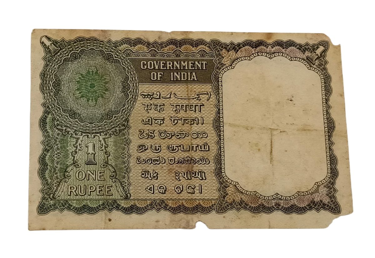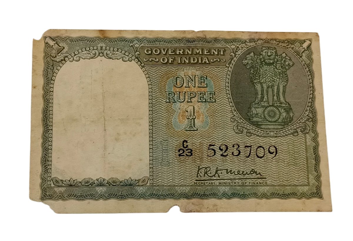 One Rupee Old FLORAL MOTIF Design FIRST Issue K.R K MENON **EX-RARE** Collectable Grade with Minor Torns.