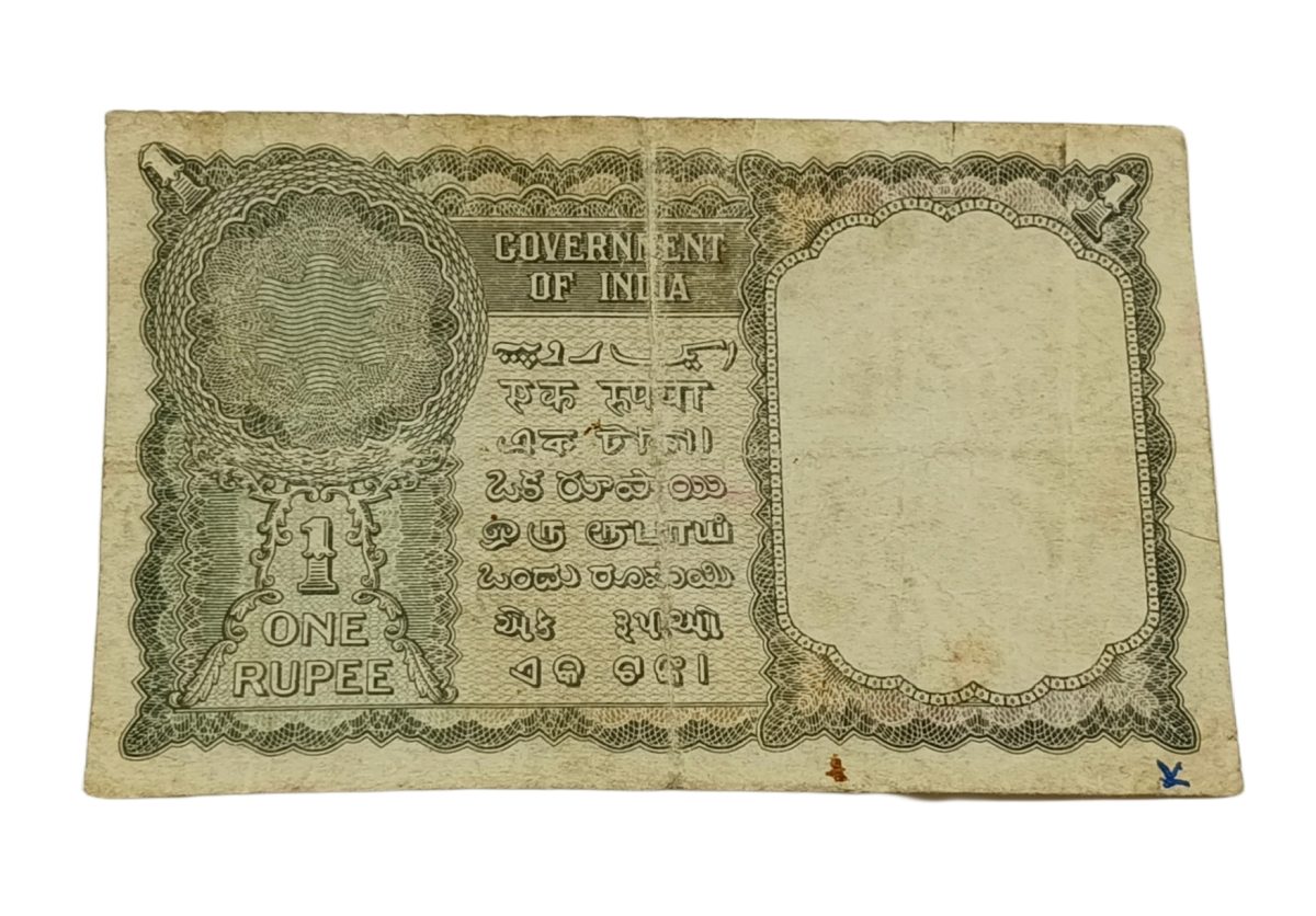 One Rupee Old Issue Year 1950 FLORAL MOTIF Sign K.G AMBEGAONKAR Grey-Green Color Catalog Number A-2 **RARE** Collectable Grade.