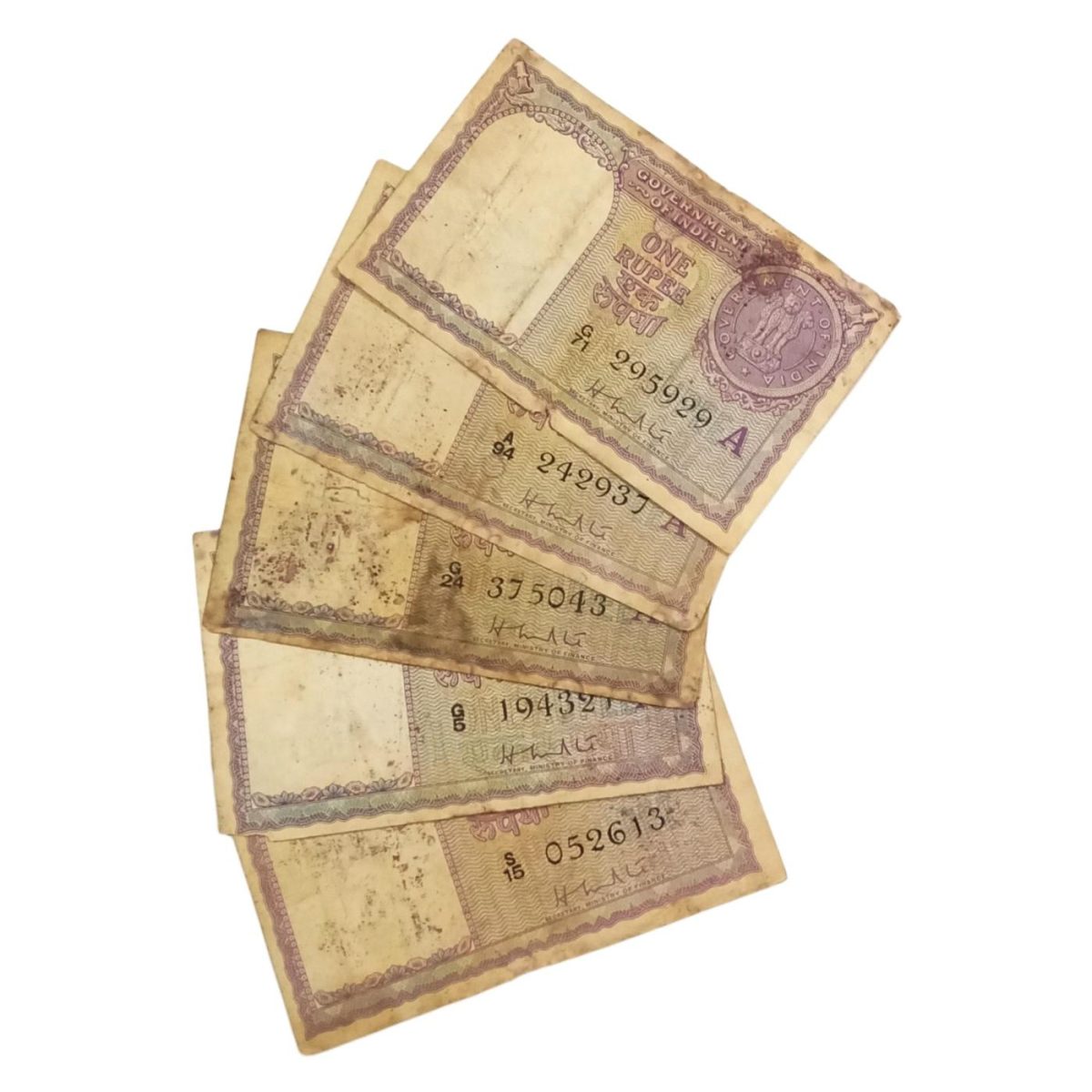 One Rupee Old Issue Year 1951 H.M PATEL Mixed Lot 5 Notes **V. SCARE** Used Conditions.