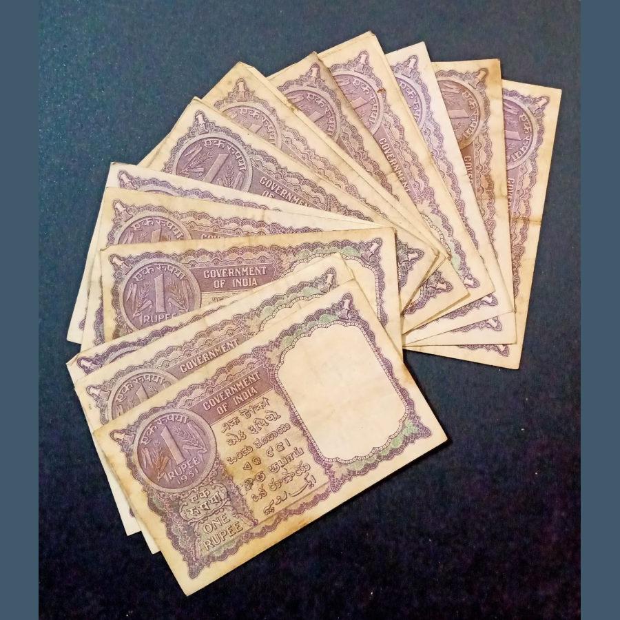 One Rupee Old Issue Year 1951 Signature H.M PATEL Mixed Lot 10 Notes RARE Used but Collectable Grades.