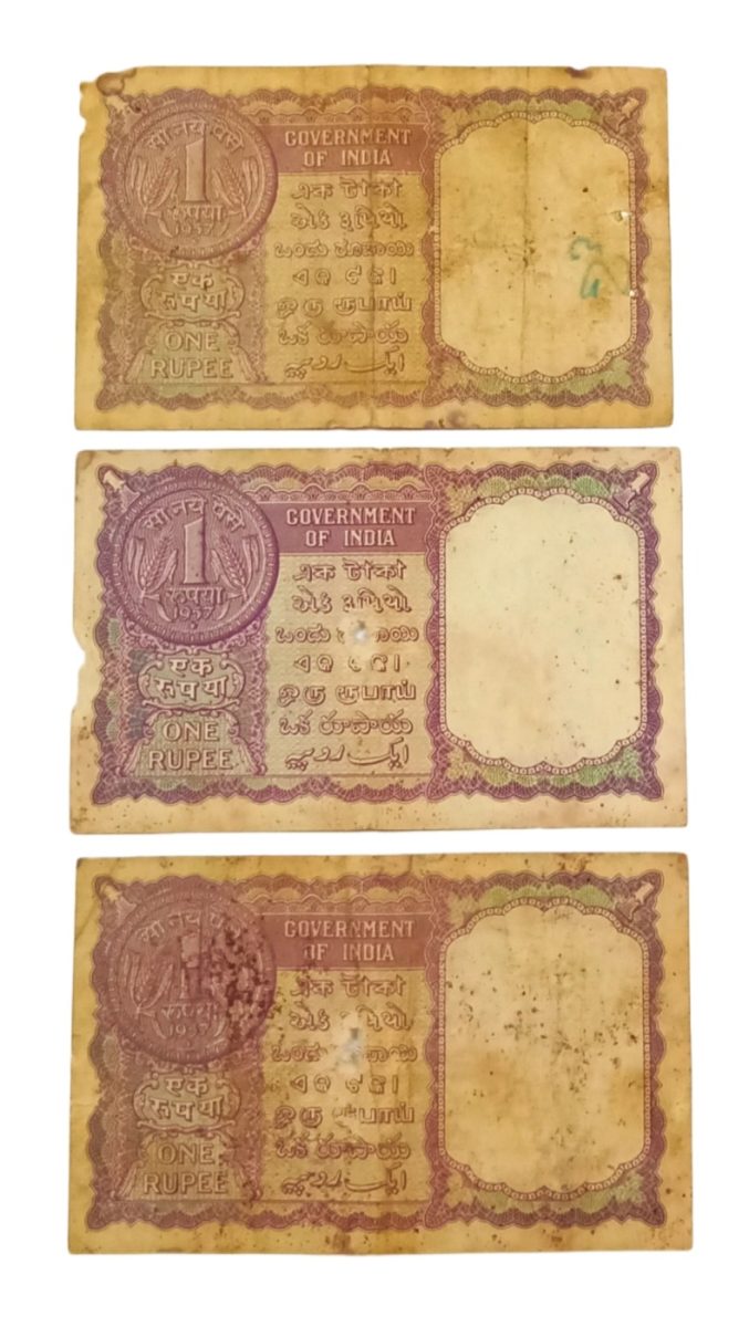 One Rupee Old Issue Year 1957 H.M PATEL Lot 3 Notes are in Used Conditions.