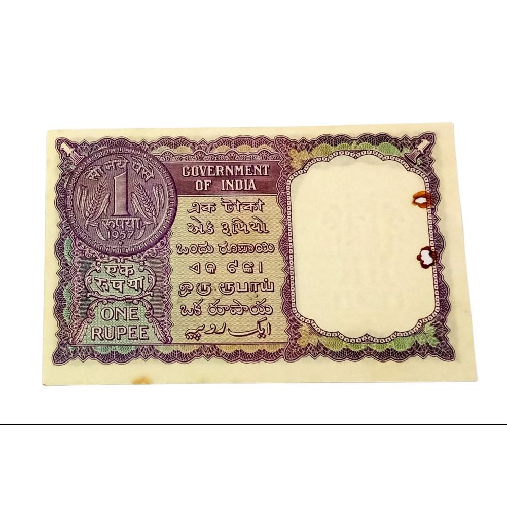One Rupee Year 1957 L.K JHA “Y” Prefix & “B” Insert **EX-RARE** Crisp UNC Except Stains, Pin holes