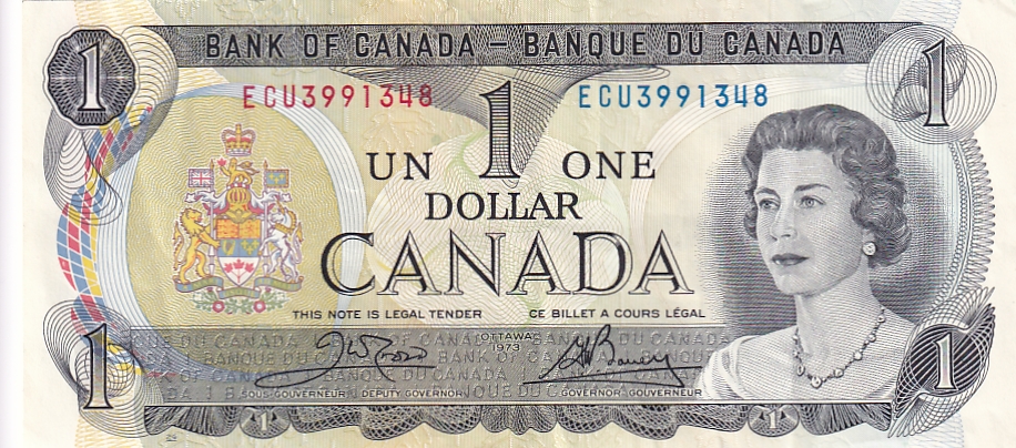 Queen Elizabeth II 1 Dollar 1973 Mid Fold Extra Fine Crisp Condition Note