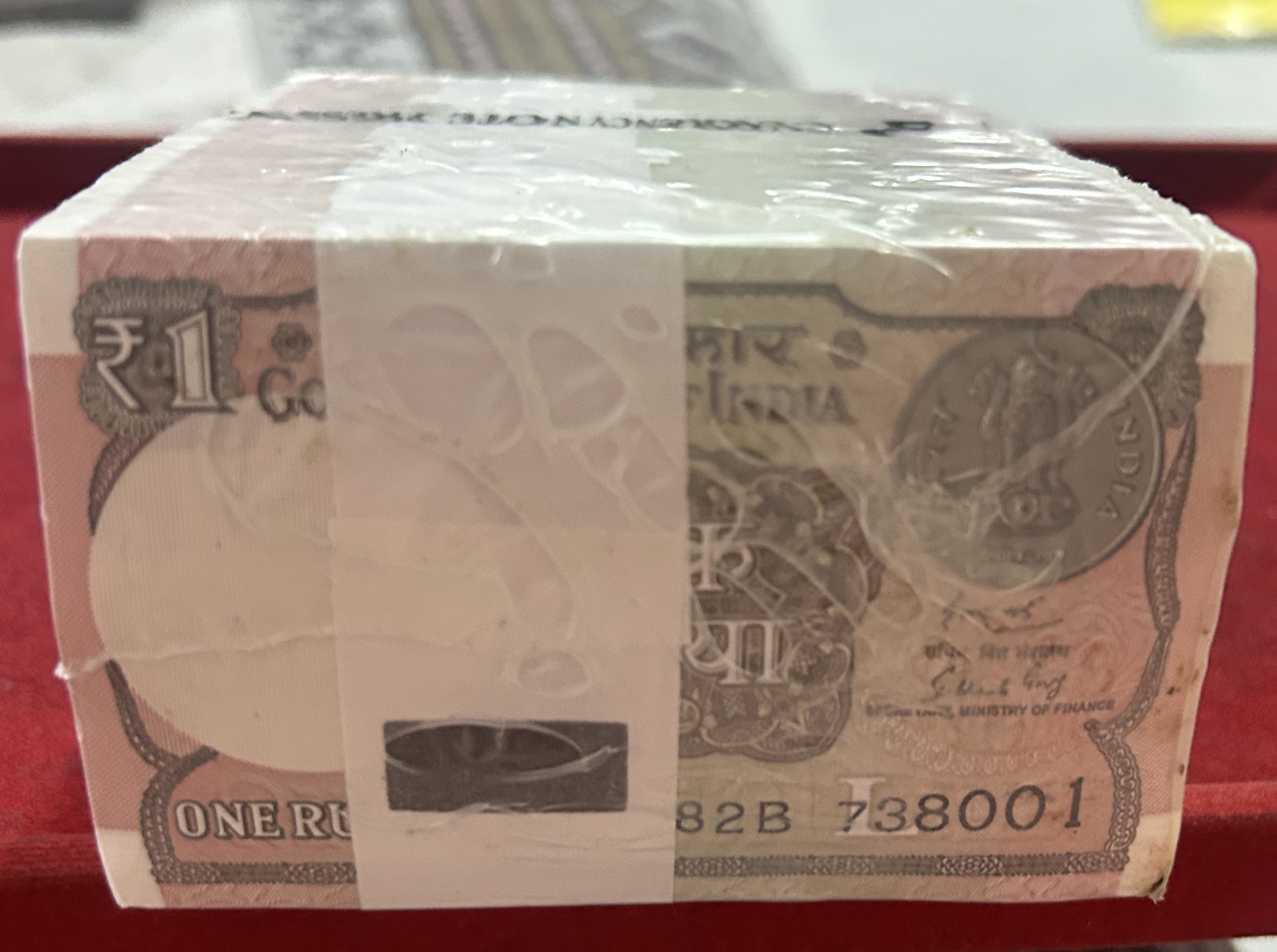 Rare 1 Rupee 2019 Rare Date gov…Subhash garg Complete RIM Sealed Mint Packed 1000 Notes GEM UNC (