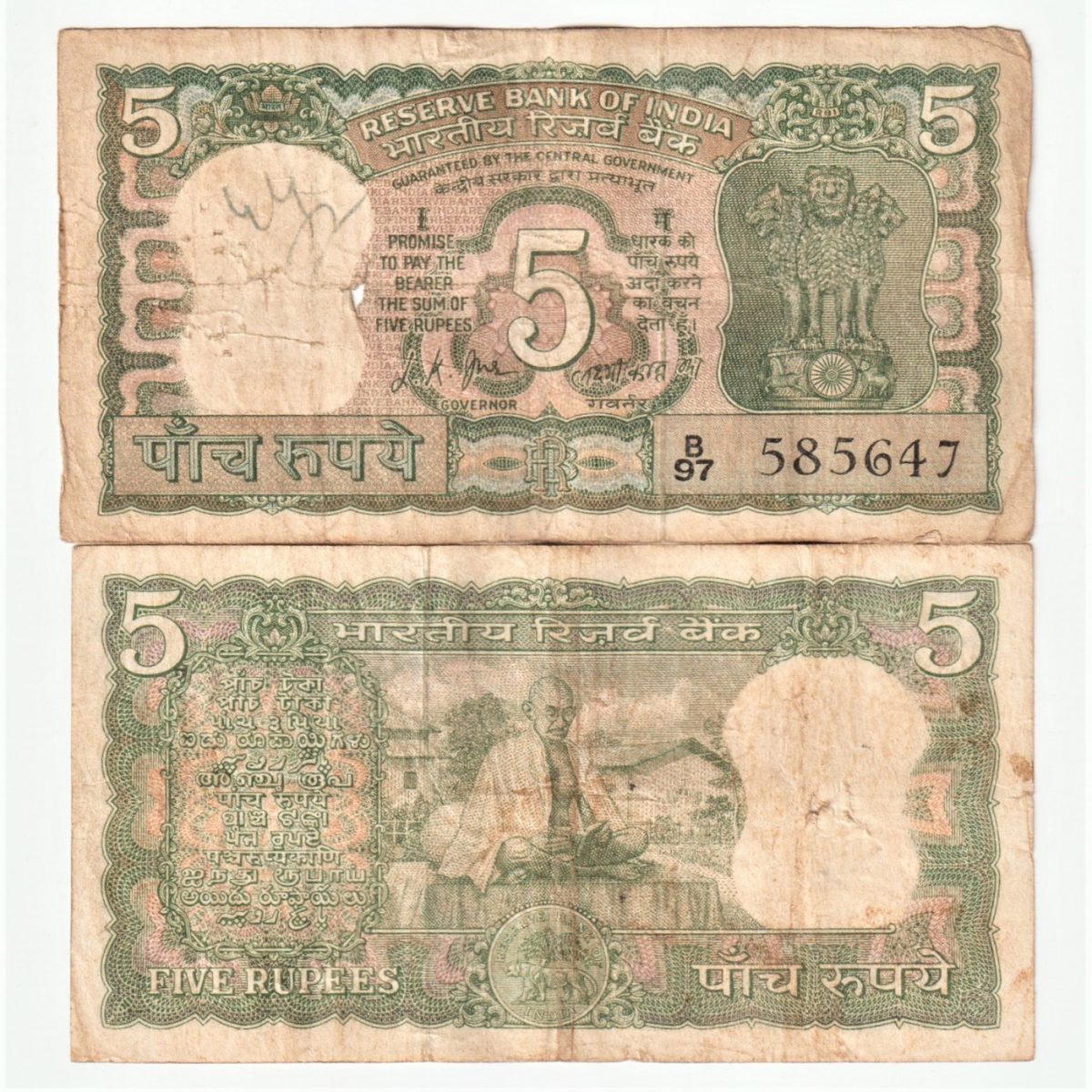 ✅ Rare 5 Rupee banknote signed by L.K. Jha