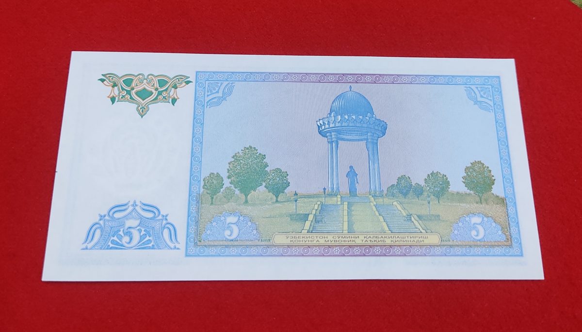 RARE 5 SOM BANK NOTE WITH ENDING 786 NUMBER (UZBEKISTAN) GEM UNC CONDITION