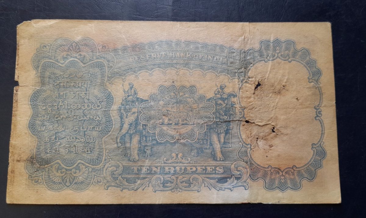 RARE BRITISH INDIA. 10₹ GOVERNOR. J. B. TAYLOR KING👑🔱🏰 GEORGE VI SIDE FACE & BACK 2 ELEPHA