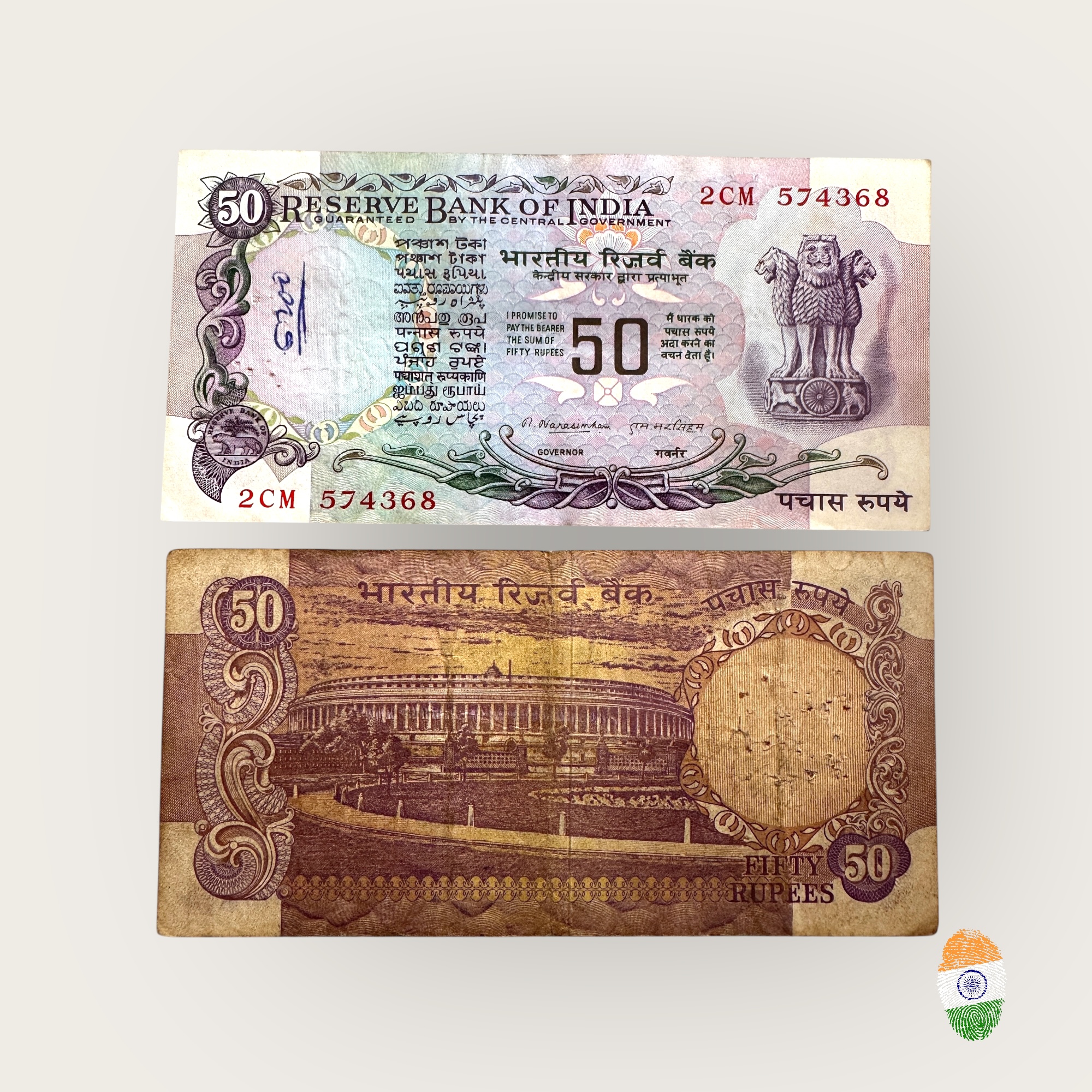 Rare Rs 50 India Banknote N Narasingham Without Flag Issue Unique and Rare