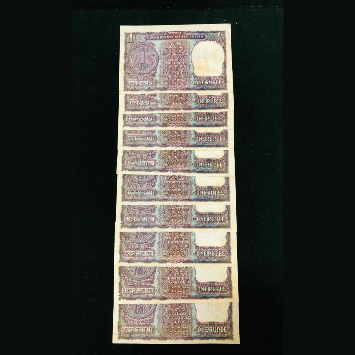 Re 1 India Banknote 1970s Issue Signed By I G Patel 10 Note Lot AUNC Inset C