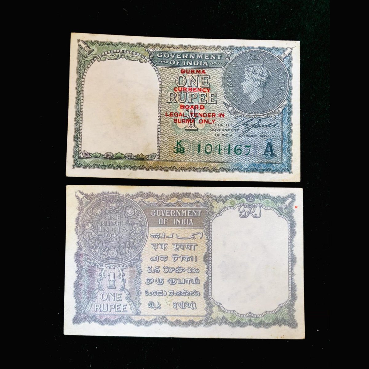 Re 1 King George VI Issue 1940 Unique and Rare British India Issue Burma Over Print Crisp