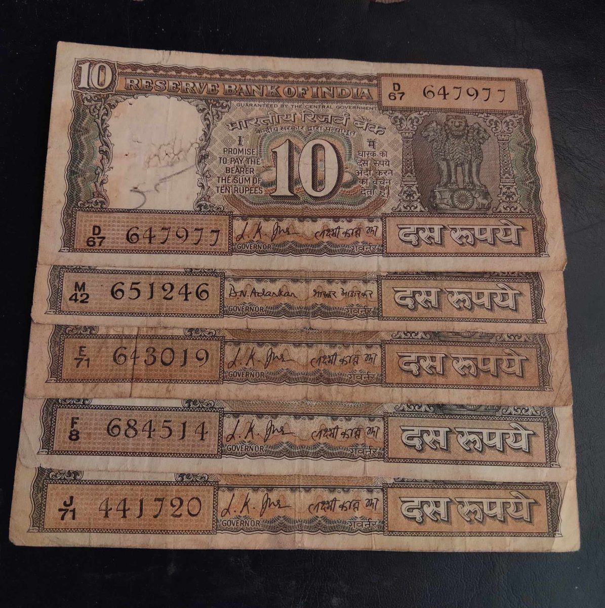 Reserve Bank of India 10₹ note Backside of mahatma Gandhi Governor Bhaskar adakar L.k jha Same and similar note are available