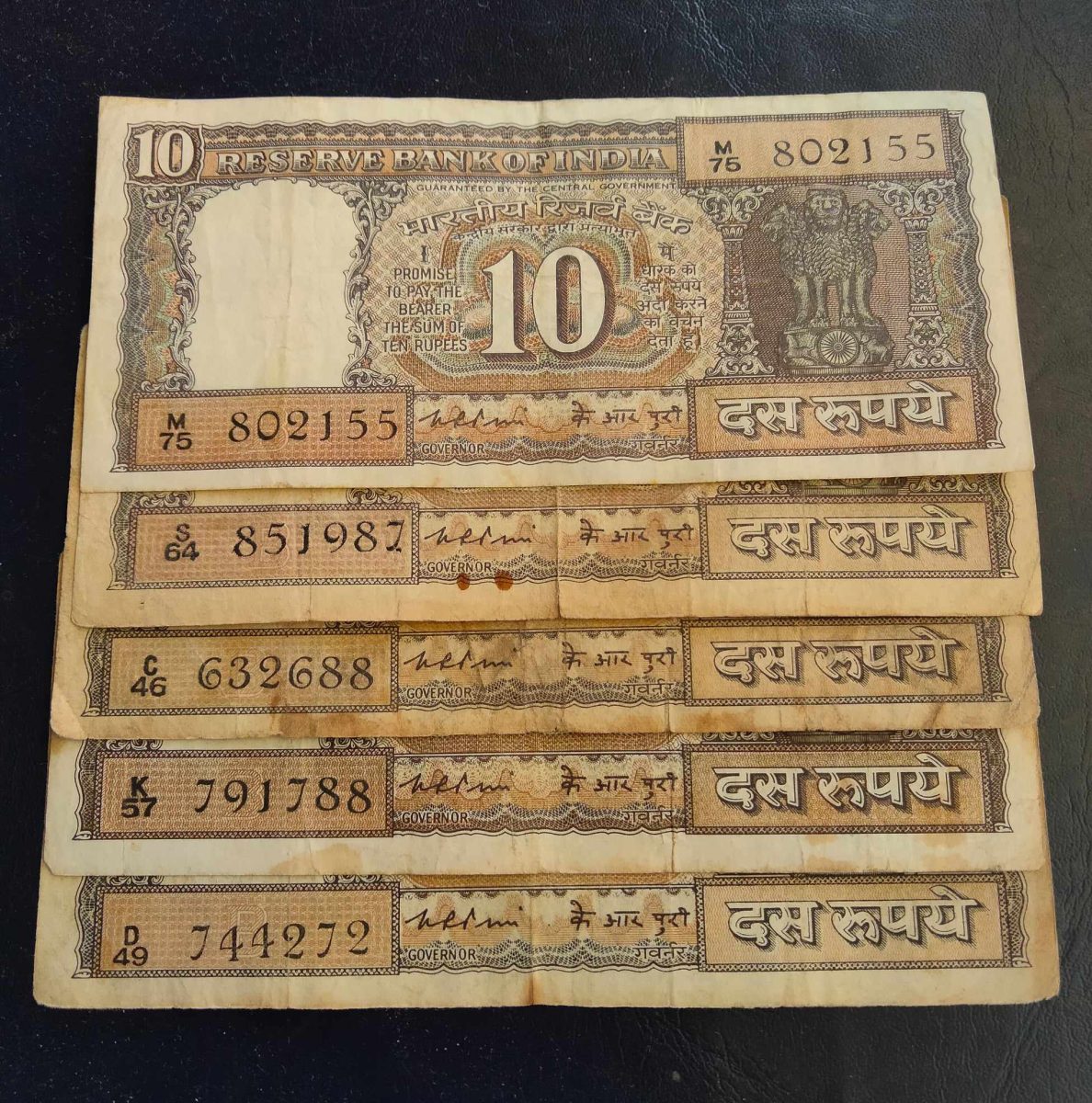 Reserve Bank of India 10₹ note Governor k.R. Puri Same and similar set are available