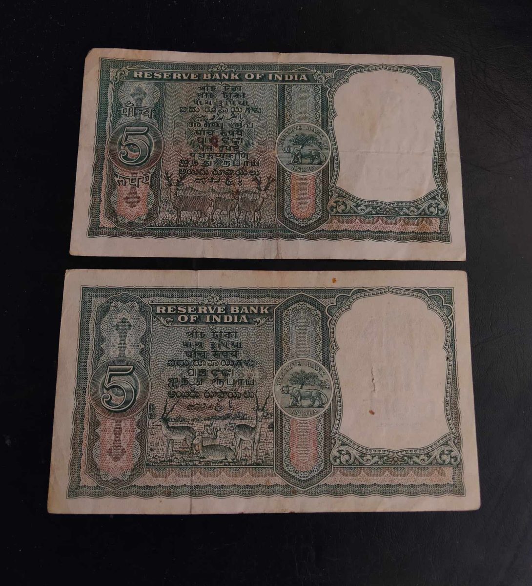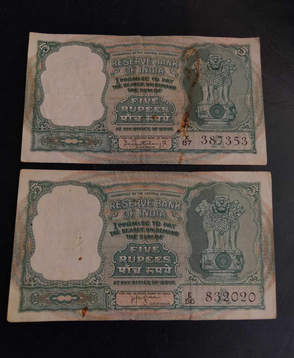 Reserve Bank of India 5₹ note Governor P.C. Bhattacharya H.V.R Iyengar Same and similar note is available
