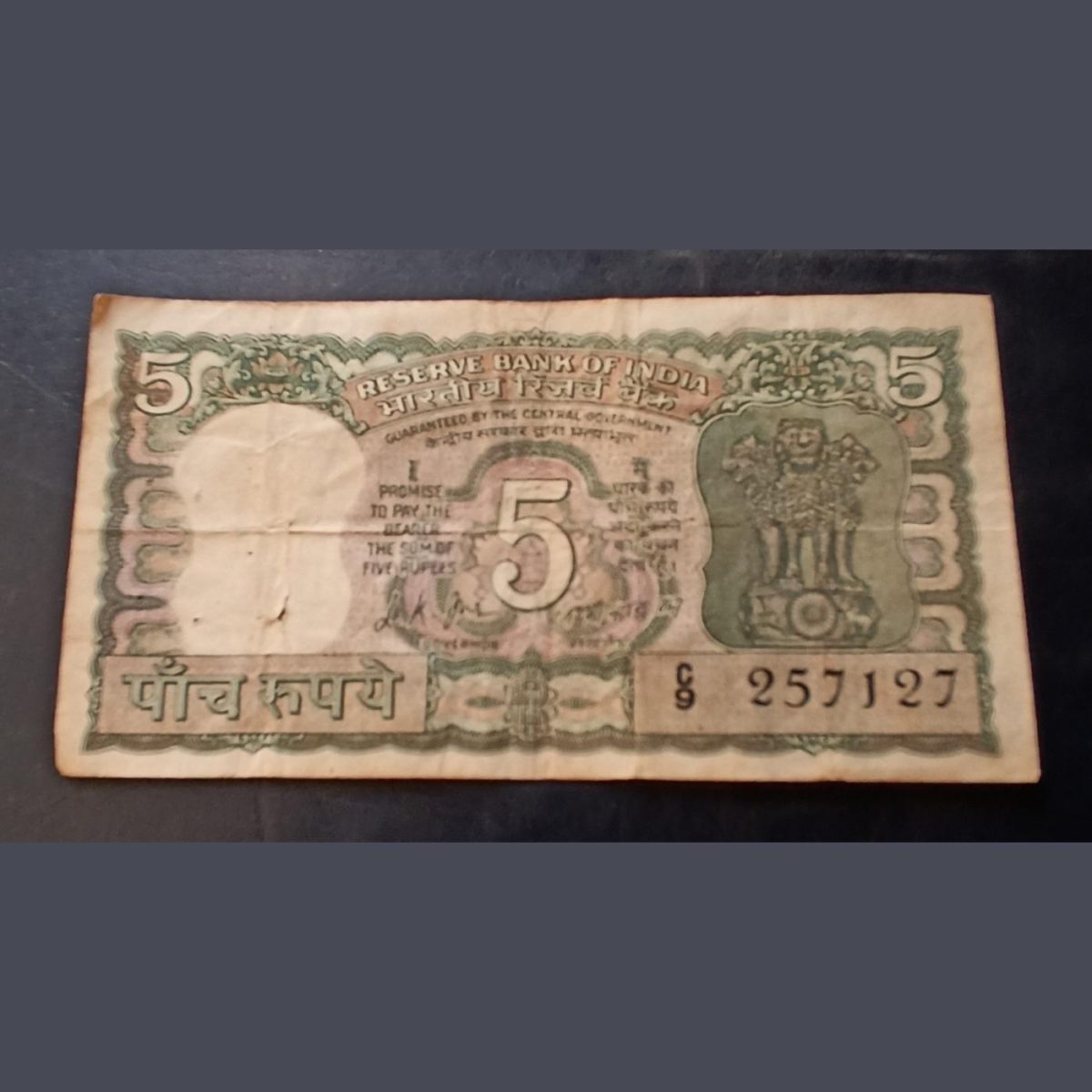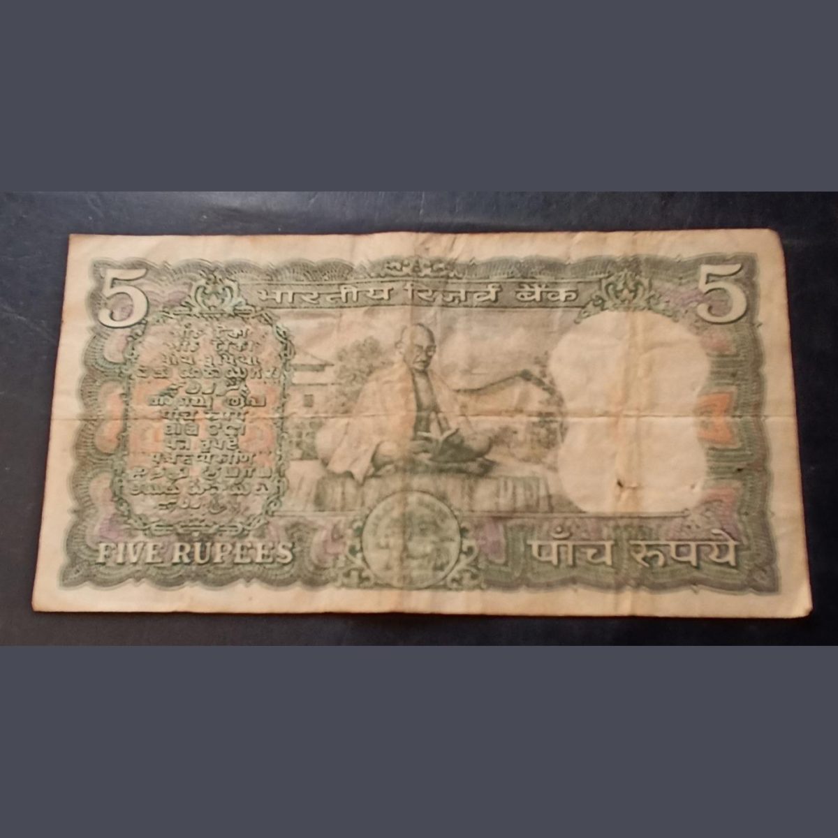 Reserve Bank of India 5rs note Back side of Mahatma Gandhi Governor L.K. jha