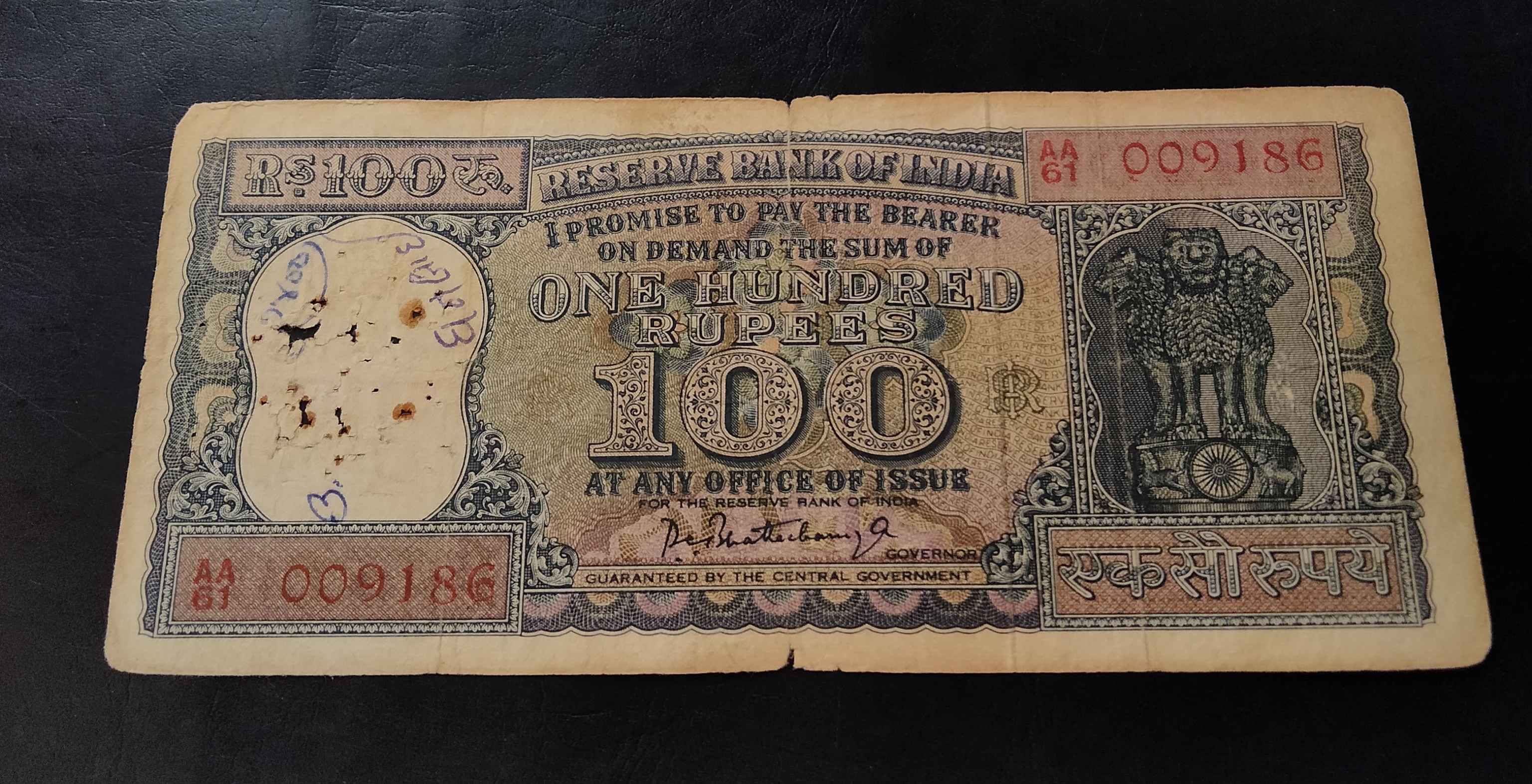 Reserve Bank of India Rs 100 note Signature of PC. Bhattacharya Diamond issue Condition as imege Same and similar piece available