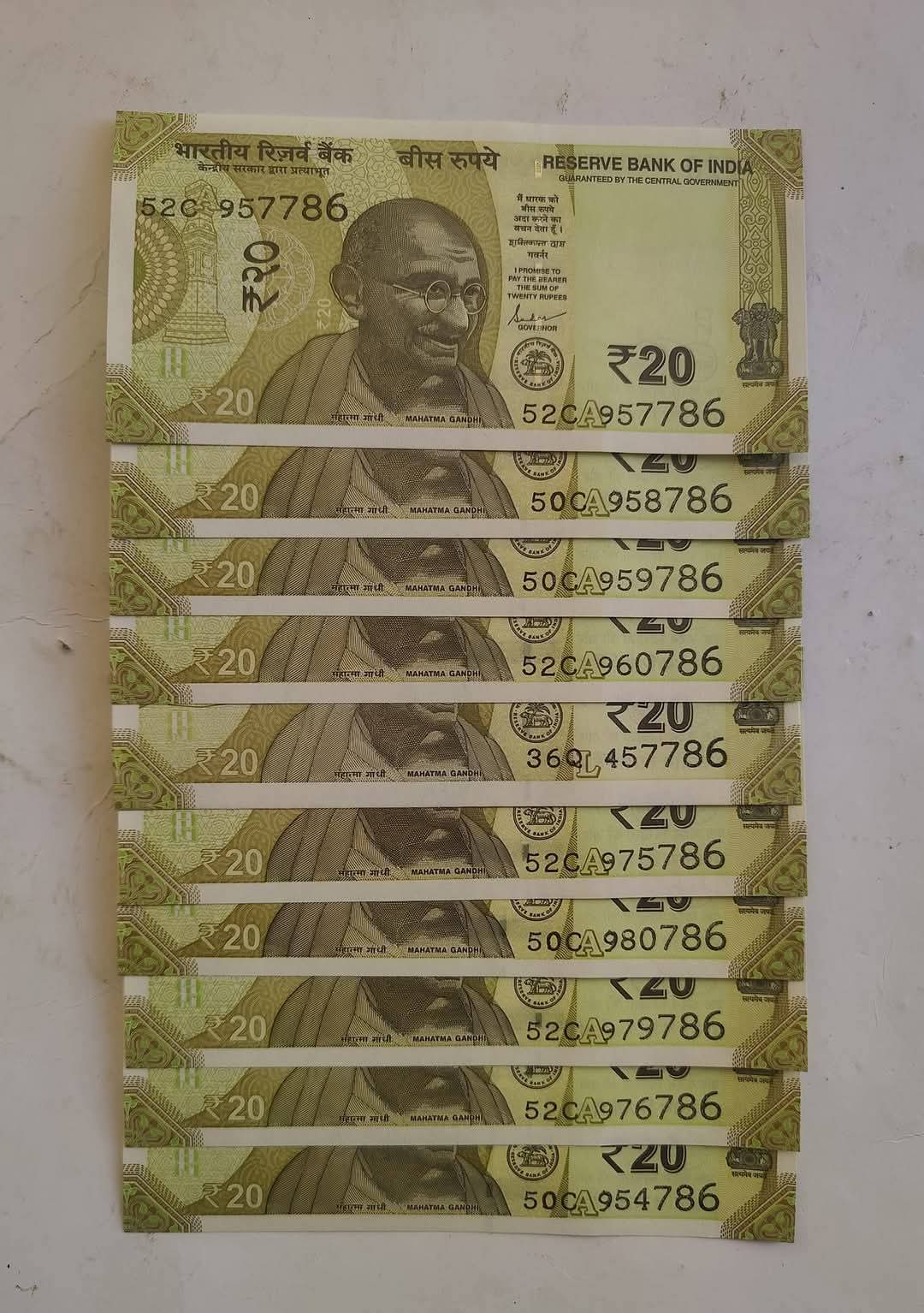 Reserve Bank of India Rs 20 note Ending 786 10 piece given Condition is image Same and similar peace available