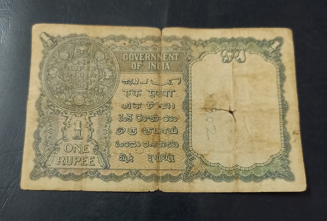 Rs 1 very rare note British period 1940 George Vl Condition as imege Same and similar piece available