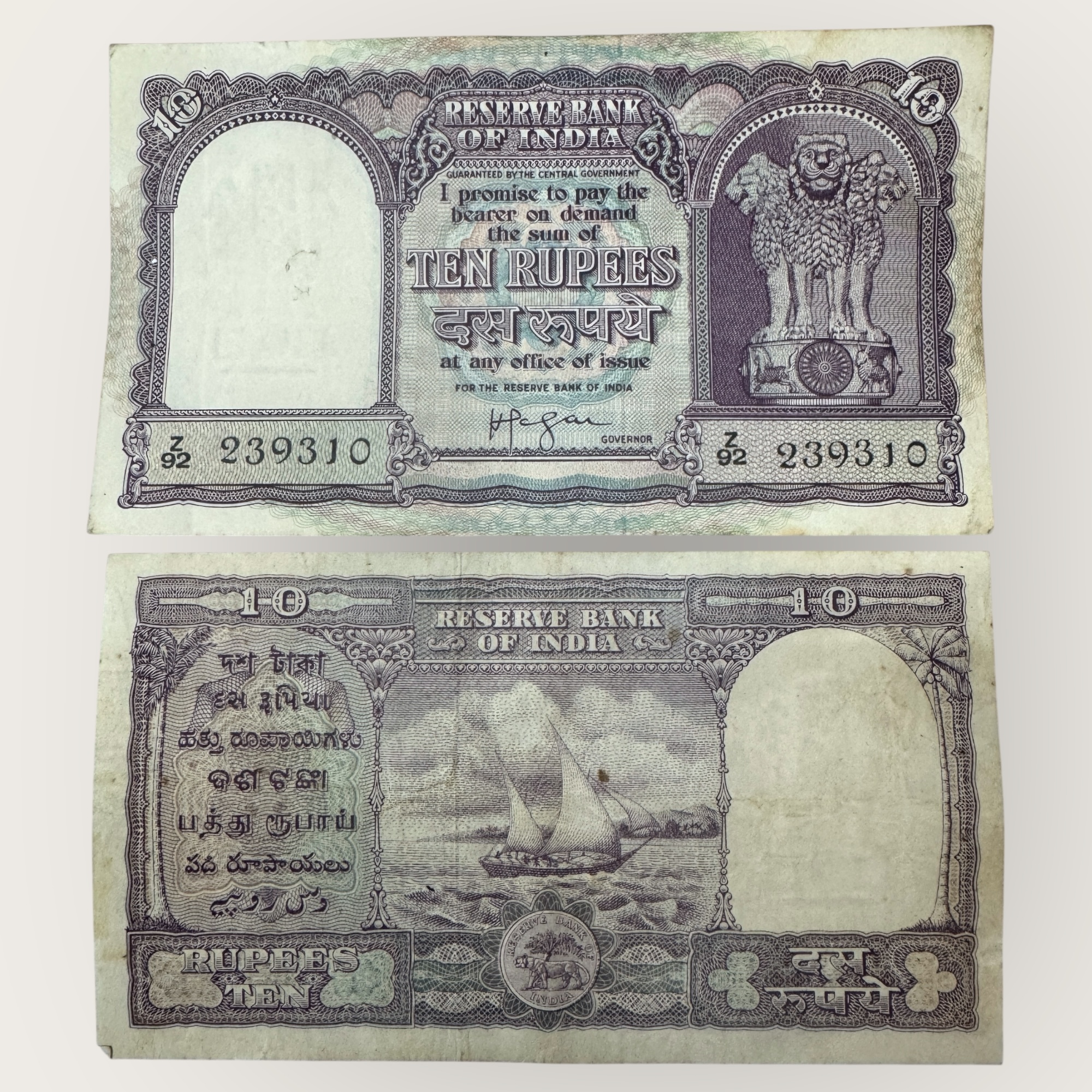 Rs 10 India Banknote 1960s Signed By H V Iyengar Inset Plain Very unique And Rare