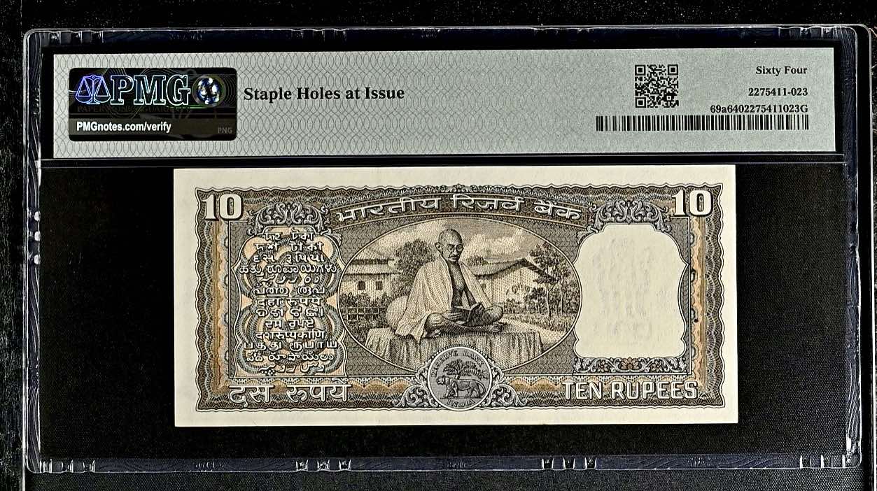 Rs 10 India Banknote Graded By PMG 64 L K Jha Commemorative 1969 Issue Unique and Rare