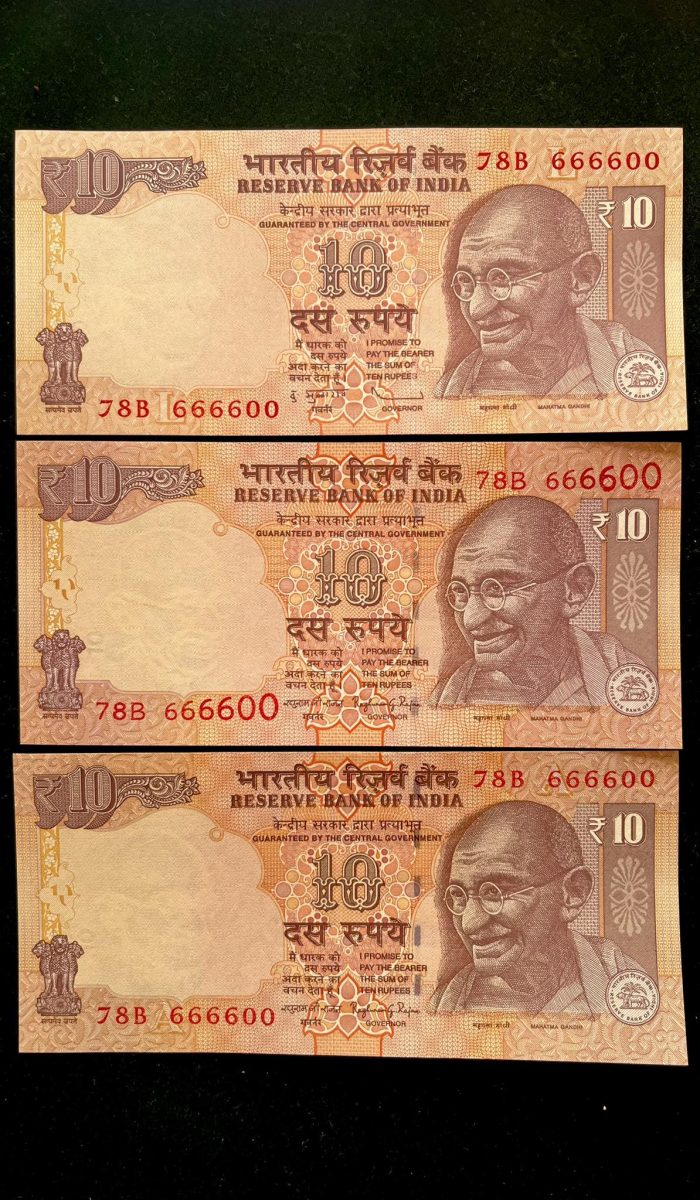 Rs 10 INDIA Banknote SEMI FANCY TRIO SET 78B 666600