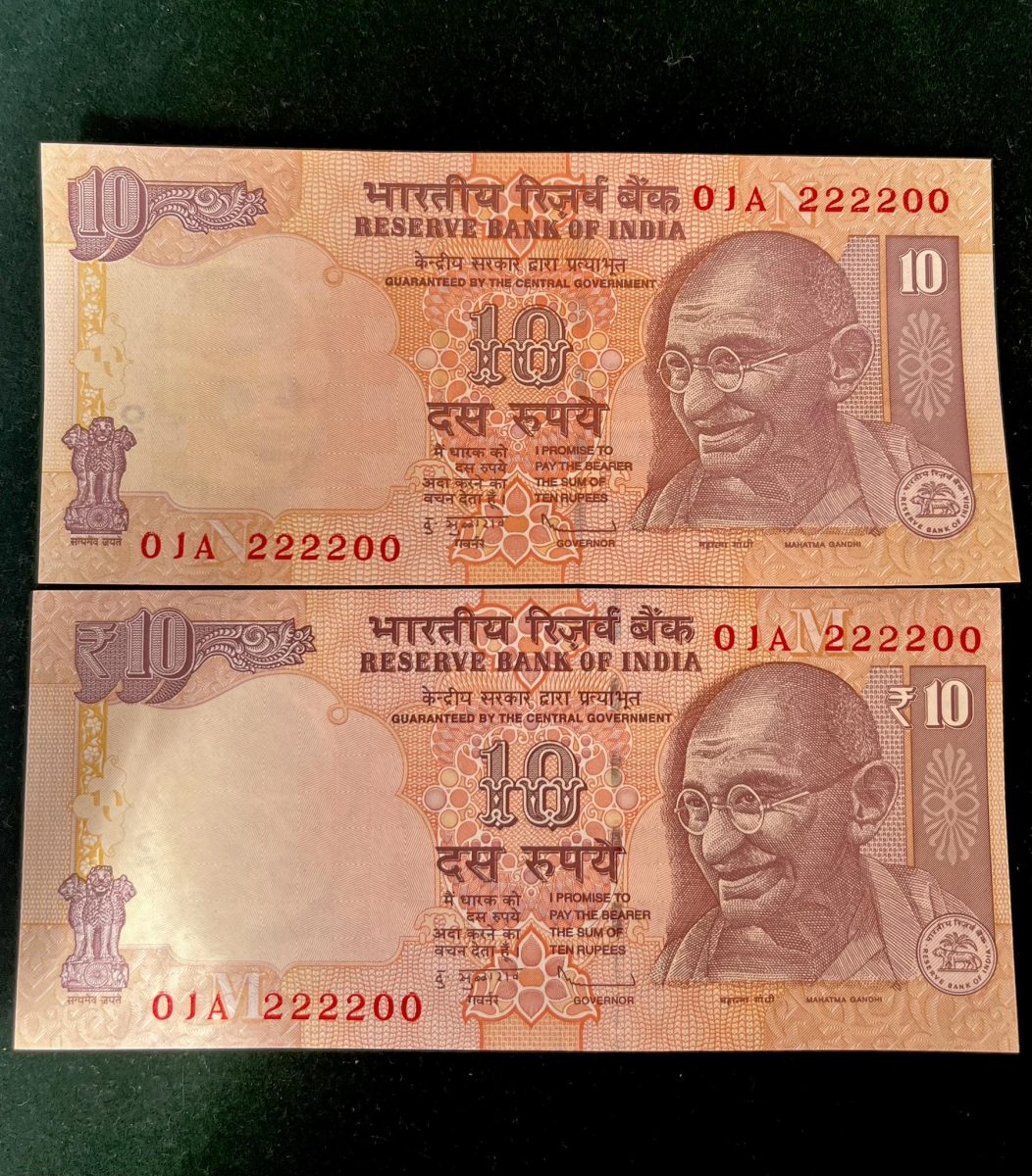 Rs 10 INDIA Banknote SEMI FANCY TWIN SET 01A 222200