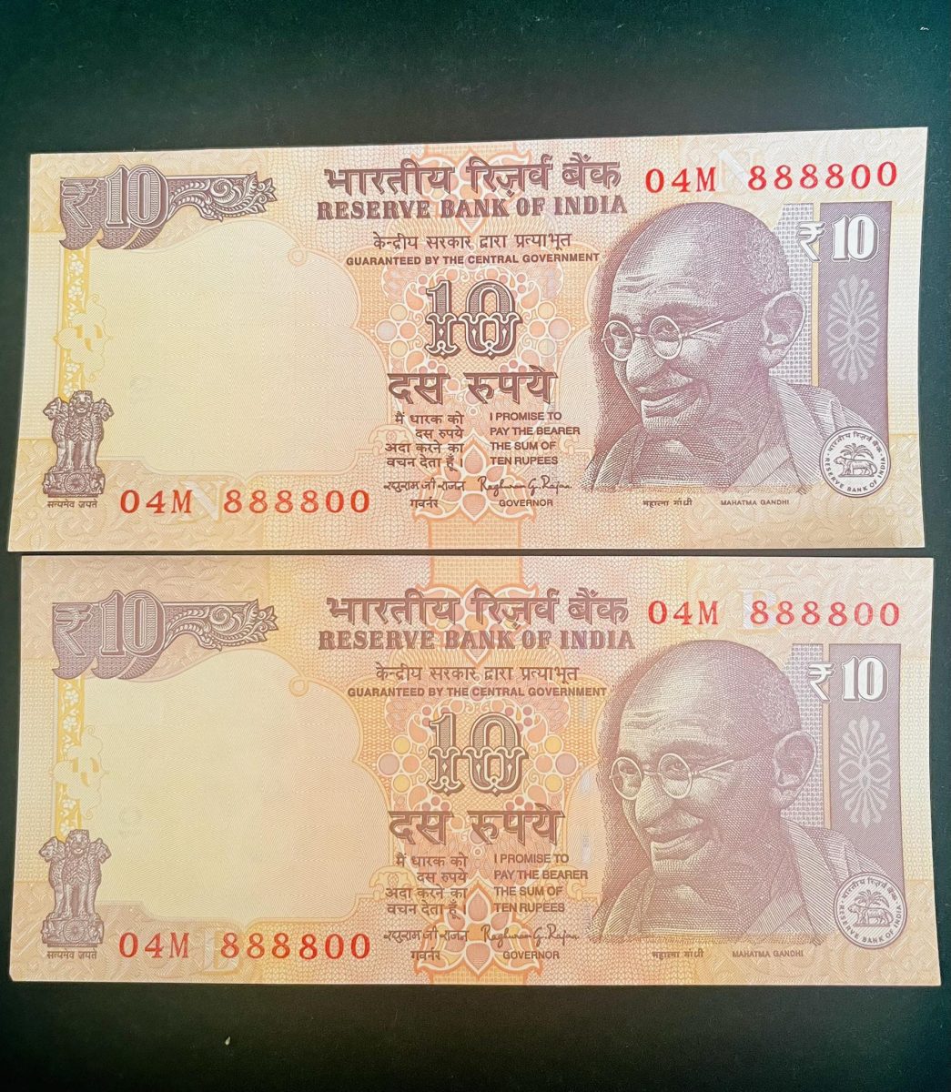 Rs 10 INDIA Banknote SEMI FANCY TWIN SET 04M 888800
