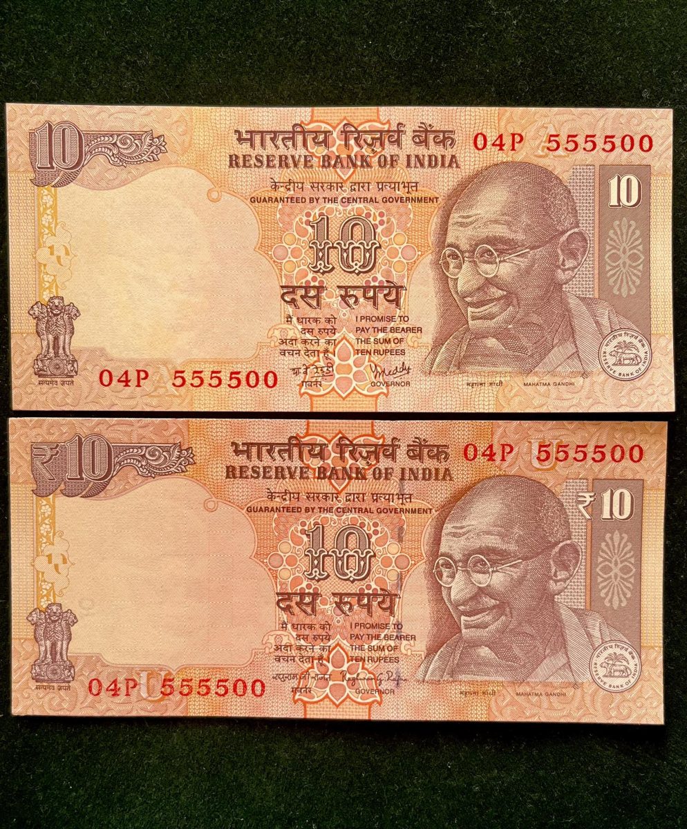 Rs 10 INDIA Banknote SEMI FANCY TWIN SET 04P 555500