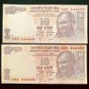Rs 10 INDIA Banknote SEMI FANCY TWIN SET 08H 444400