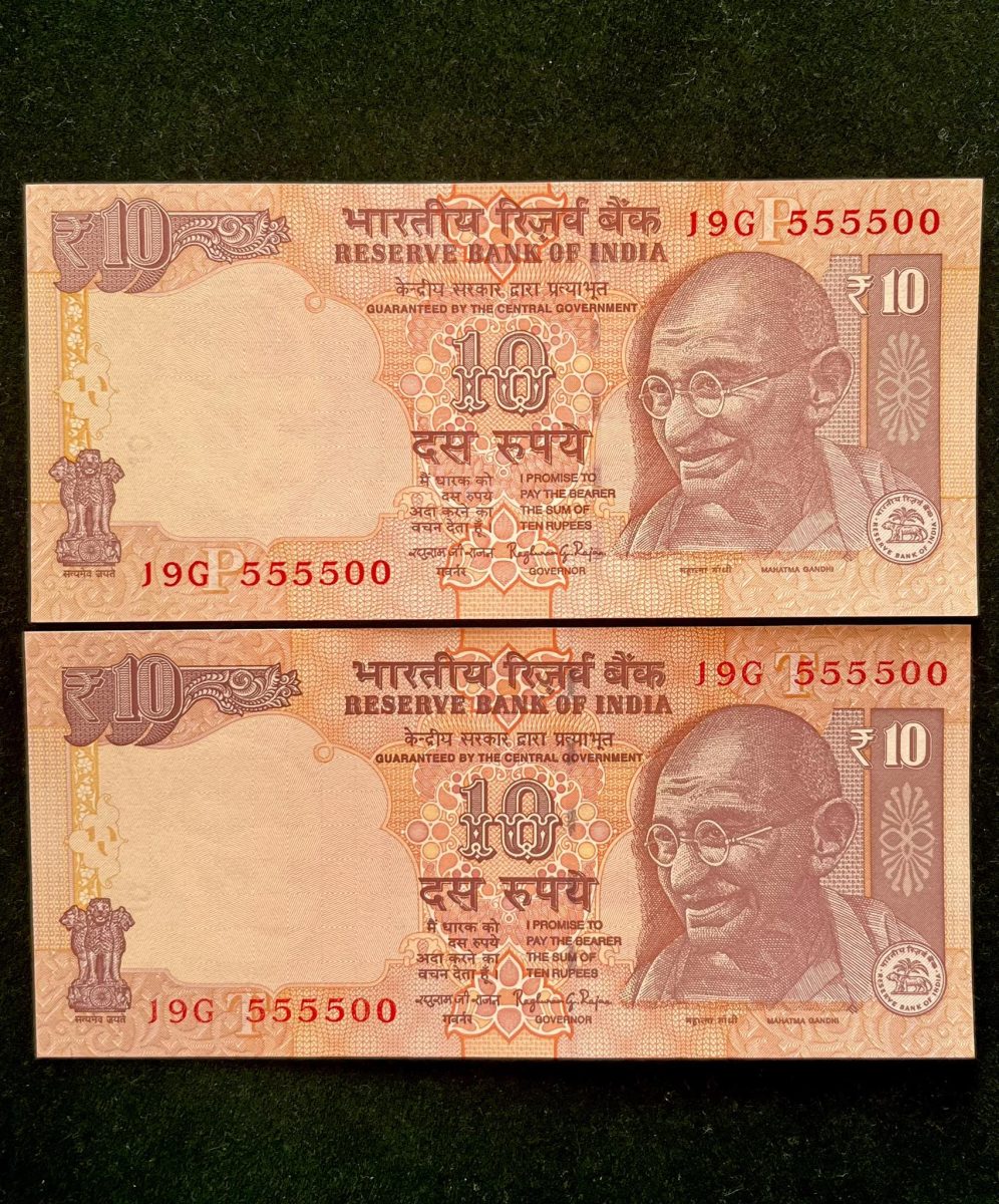 Rs 10 INDIA Banknote SEMI FANCY TWIN SET 19G 555500