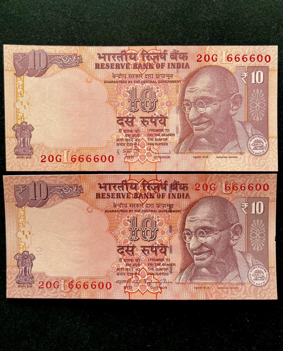 Rs 10 INDIA Banknote SEMI FANCY TWIN SET 20G 666600