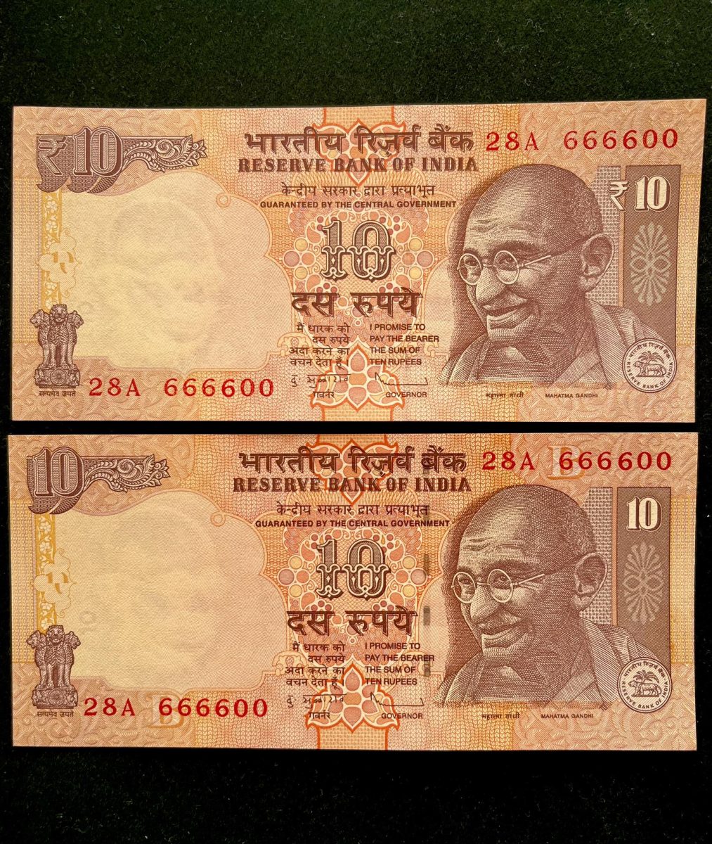 Rs 10 INDIA Banknote SEMI FANCY TWIN SET 28A 666600