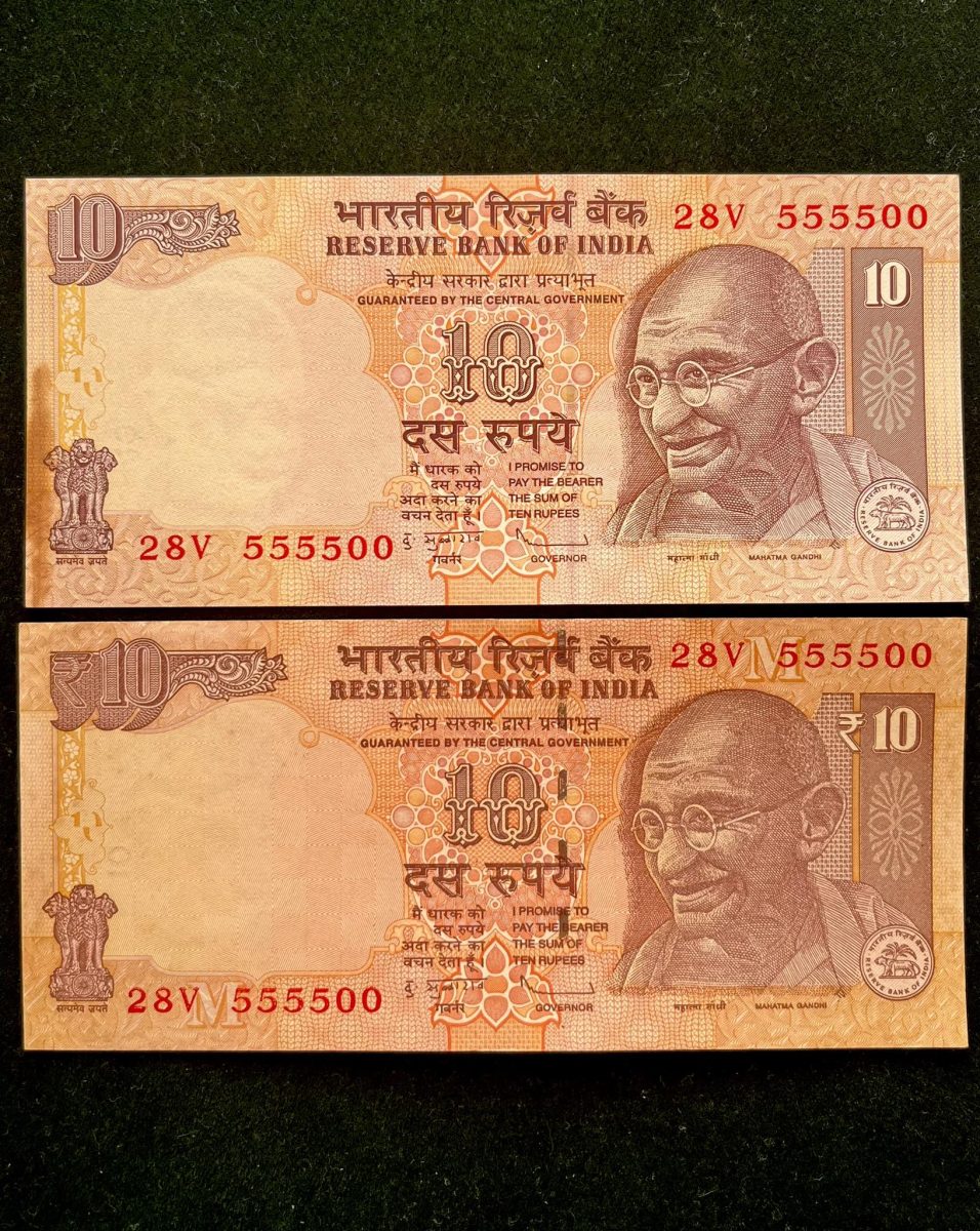 ✨ Rare Rs 10 banknote twin set with matching serial numbers