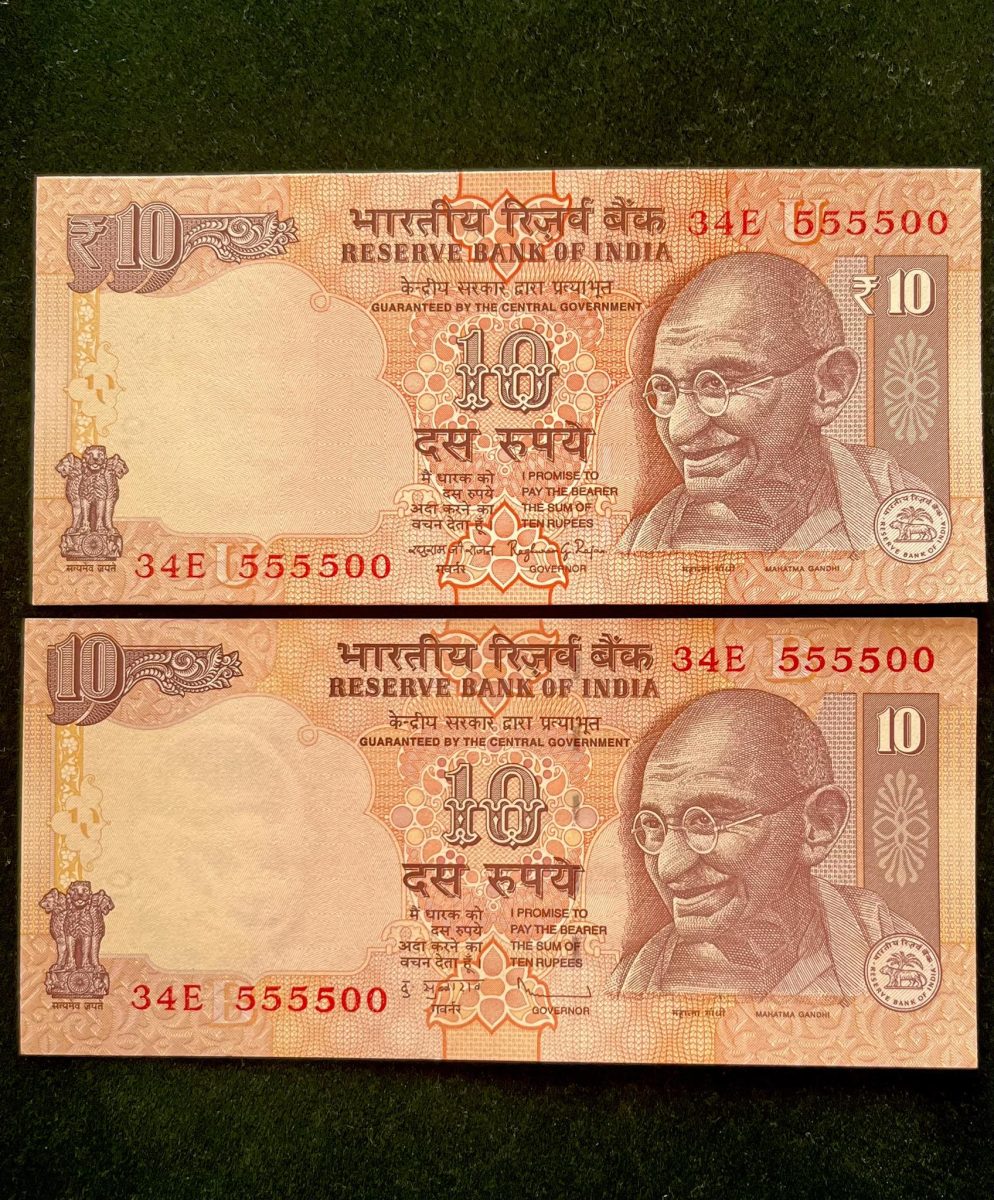 Rs 10 INDIA Banknote SEMI FANCY TWIN SET 34E 555500