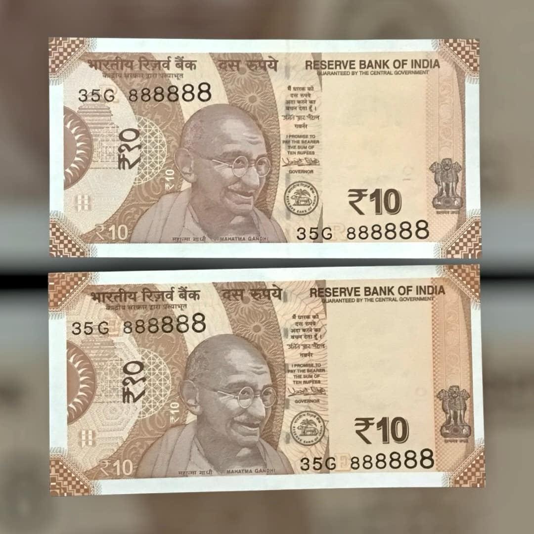 Rs 10 INDIA Banknote SEMI FANCY TWIN SET 35G 888888 UNIQUE AND RARE