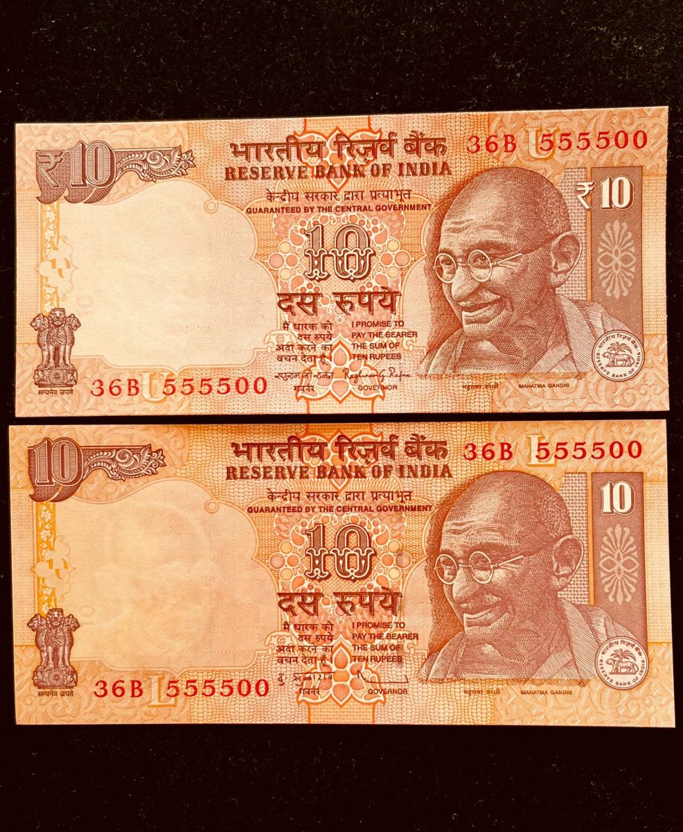 Rs 10 INDIA Banknote SEMI FANCY TWIN SET 36B 555500
