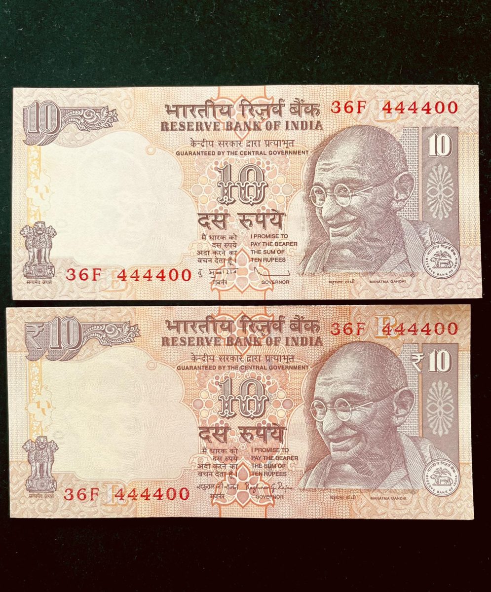 Rs 10 INDIA Banknote SEMI FANCY TWIN SET 36F 444400