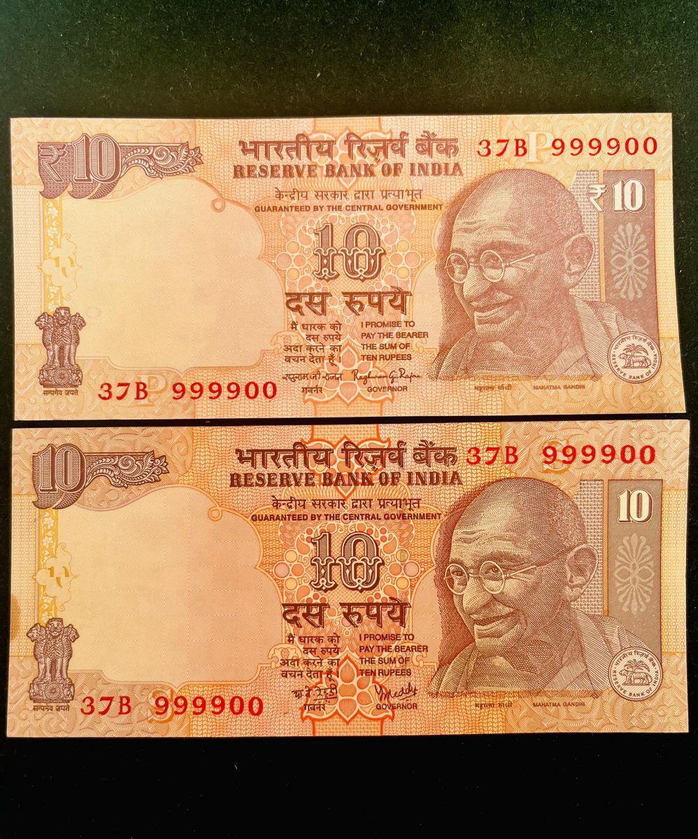 Rs 10 INDIA Banknote SEMI FANCY TWIN SET 37B 999900
