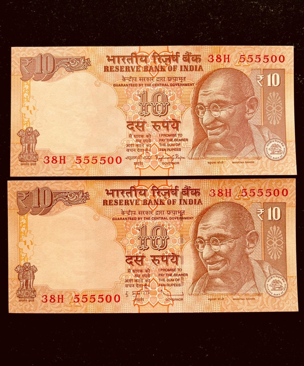 Rs 10 INDIA Banknote SEMI FANCY TWIN SET 38H 555500