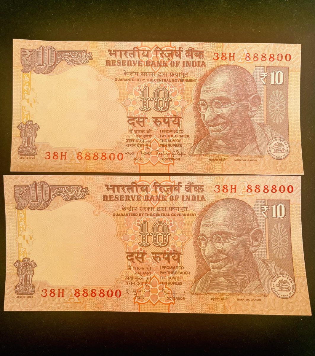 Rs 10 INDIA Banknote SEMI FANCY TWIN SET 38H 888800