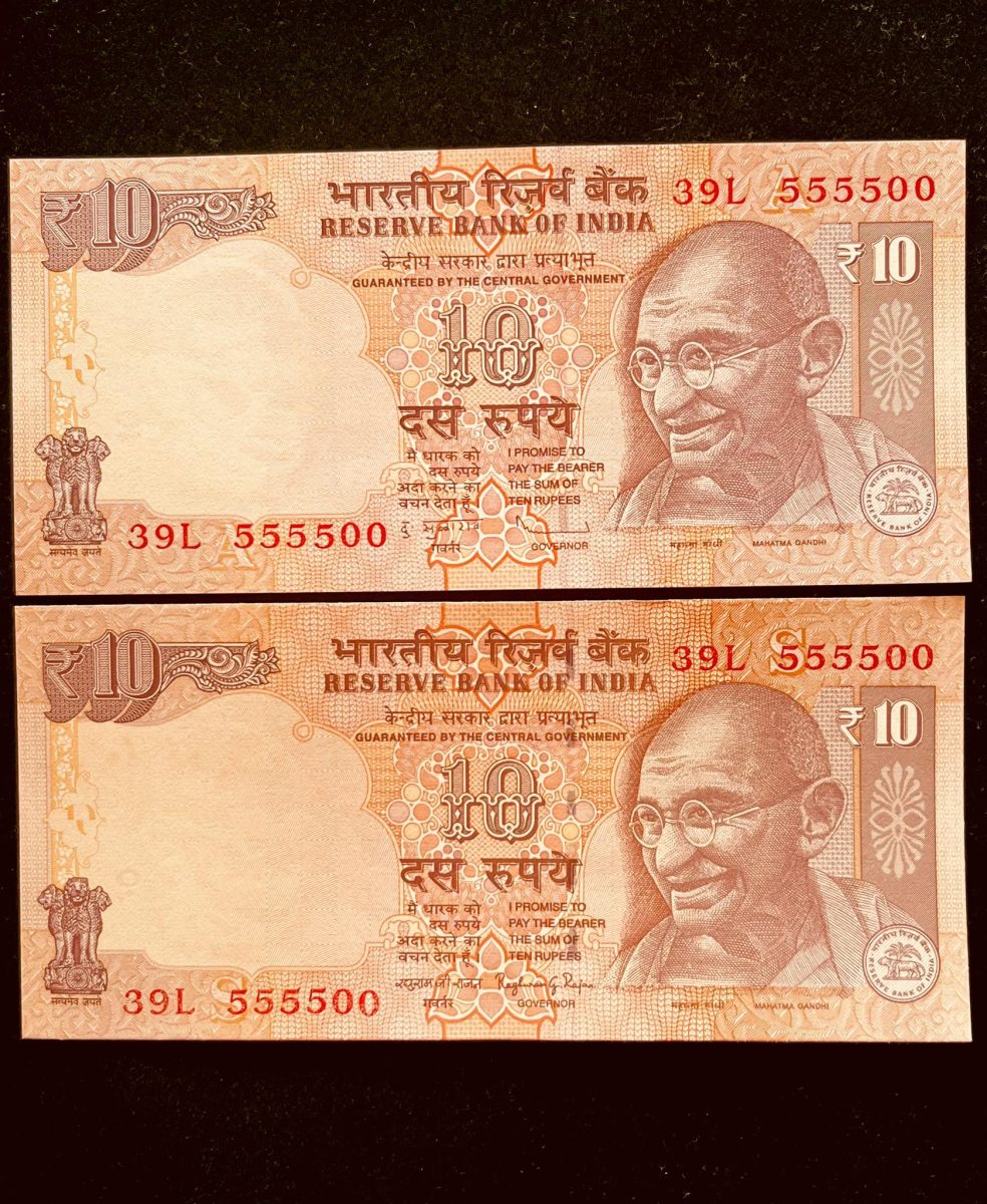 Rs 10 INDIA Banknote SEMI FANCY TWIN SET 39L 555500
