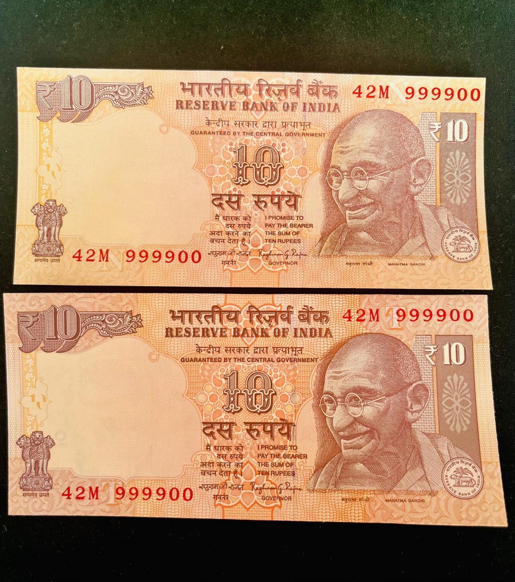 Rs 10 INDIA Banknote SEMI FANCY TWIN SET 42M 999900