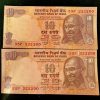 Rs 10 INDIA Banknote SEMI FANCY TWIN SET 44S 222200