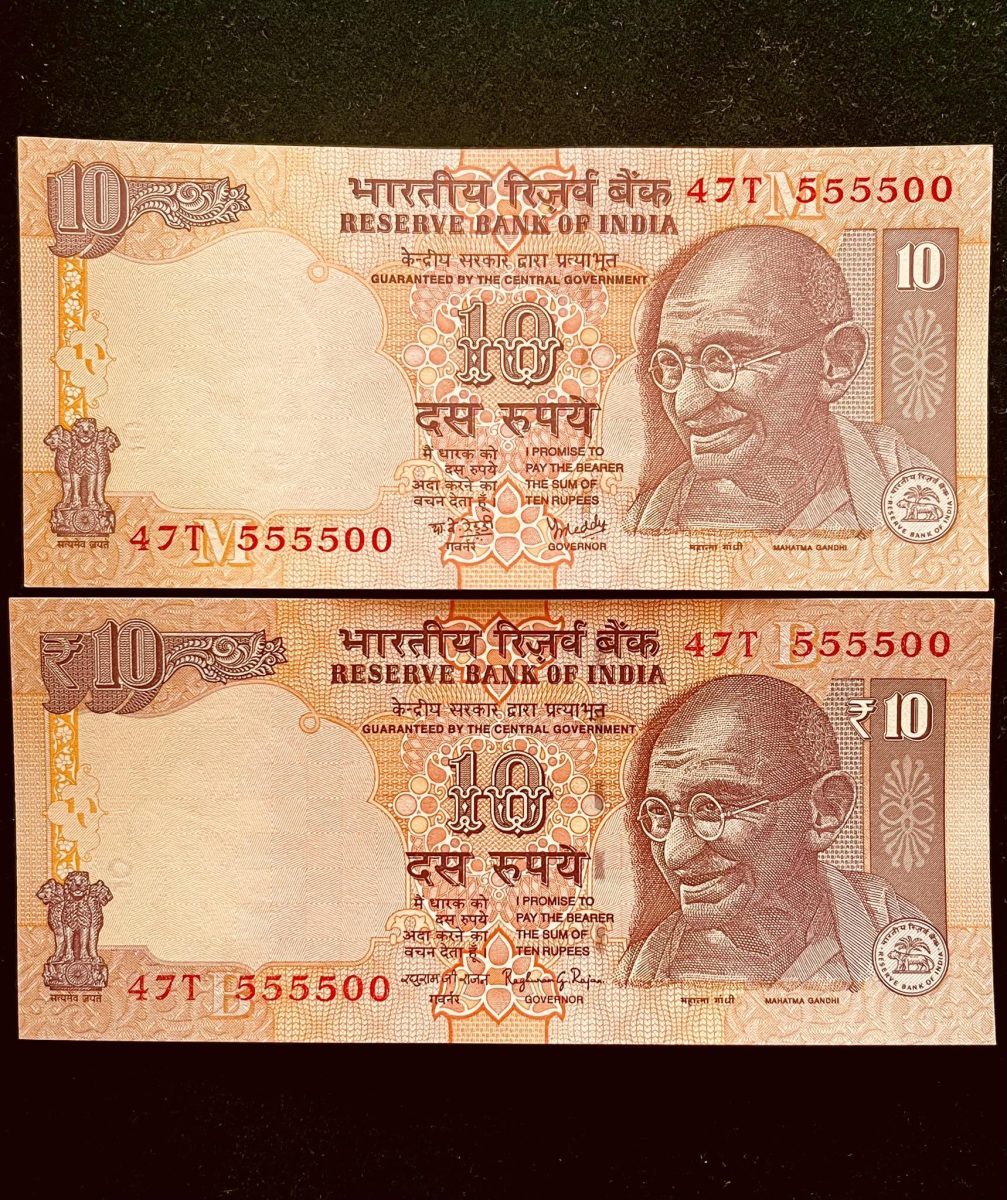 Rs 10 INDIA Banknote SEMI FANCY TWIN SET 47T 555500