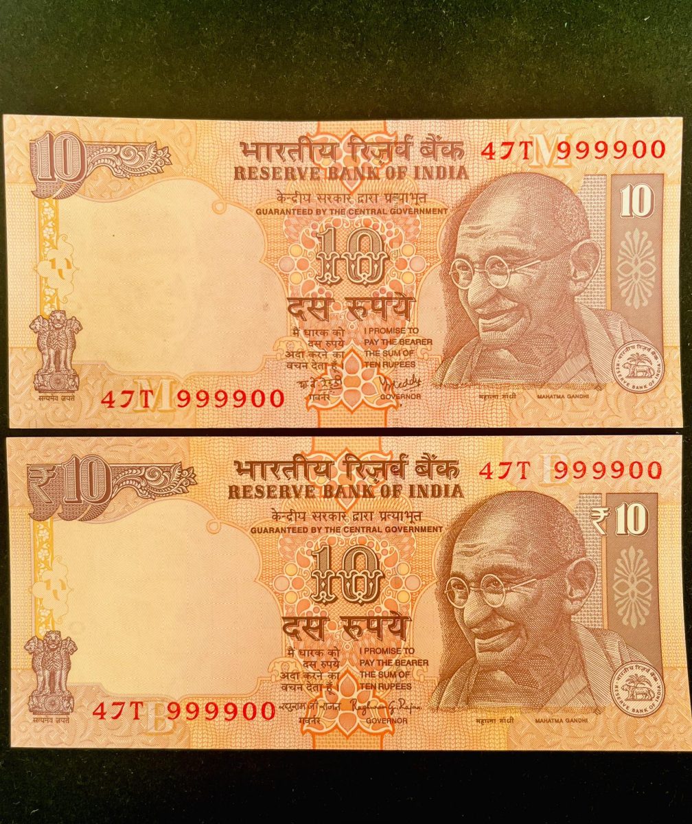 🔍 Rare Rs 10 INDIA Banknote SEMI FANCY TWIN SET