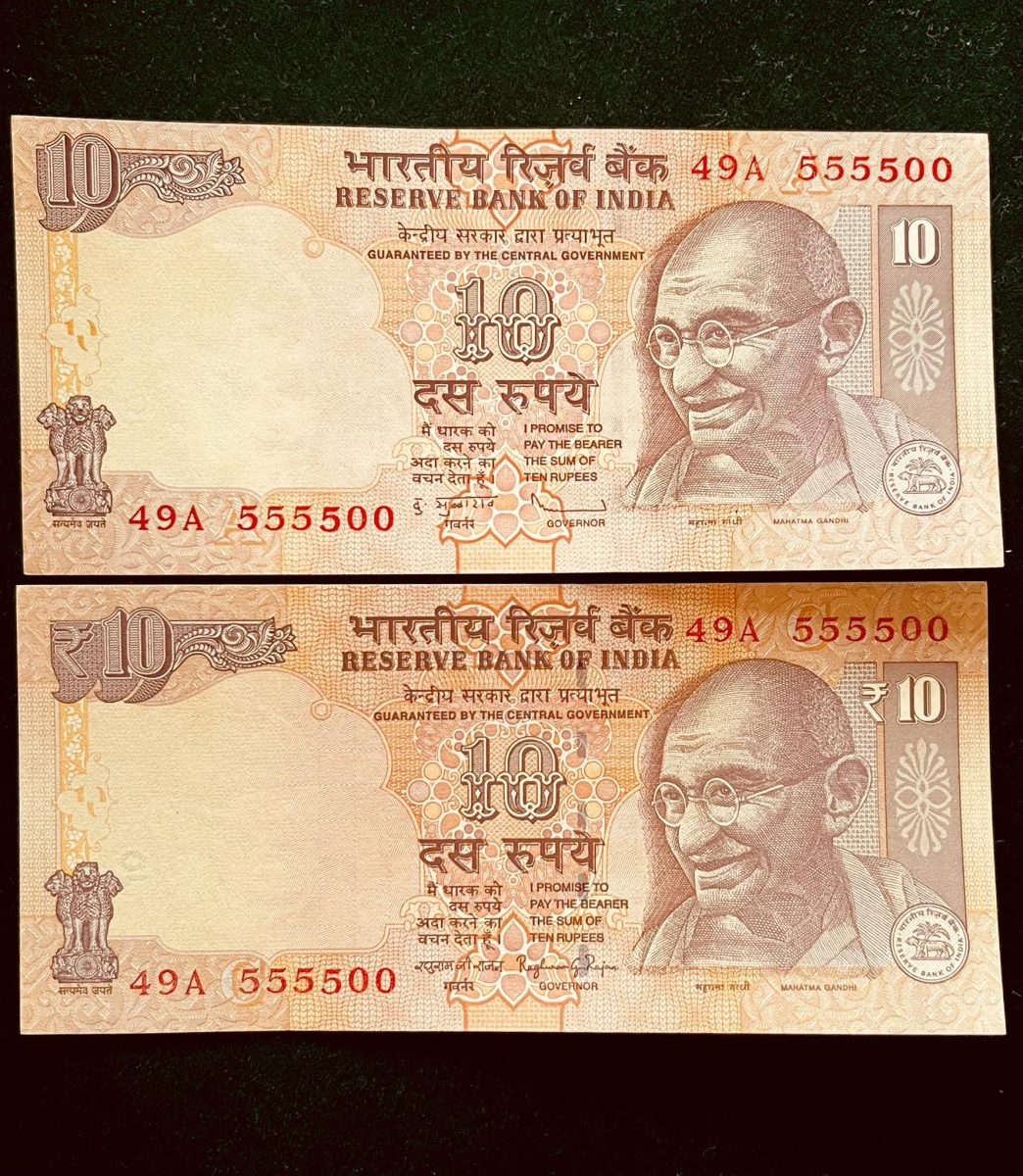 Rs 10 TWIN PAIR NOTE BOTH NUMBER SAME
