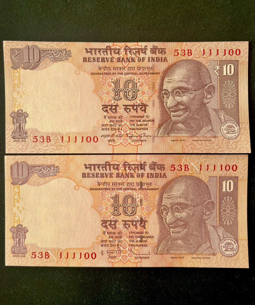 Rs 10 INDIA Banknote SEMI FANCY TWIN SET